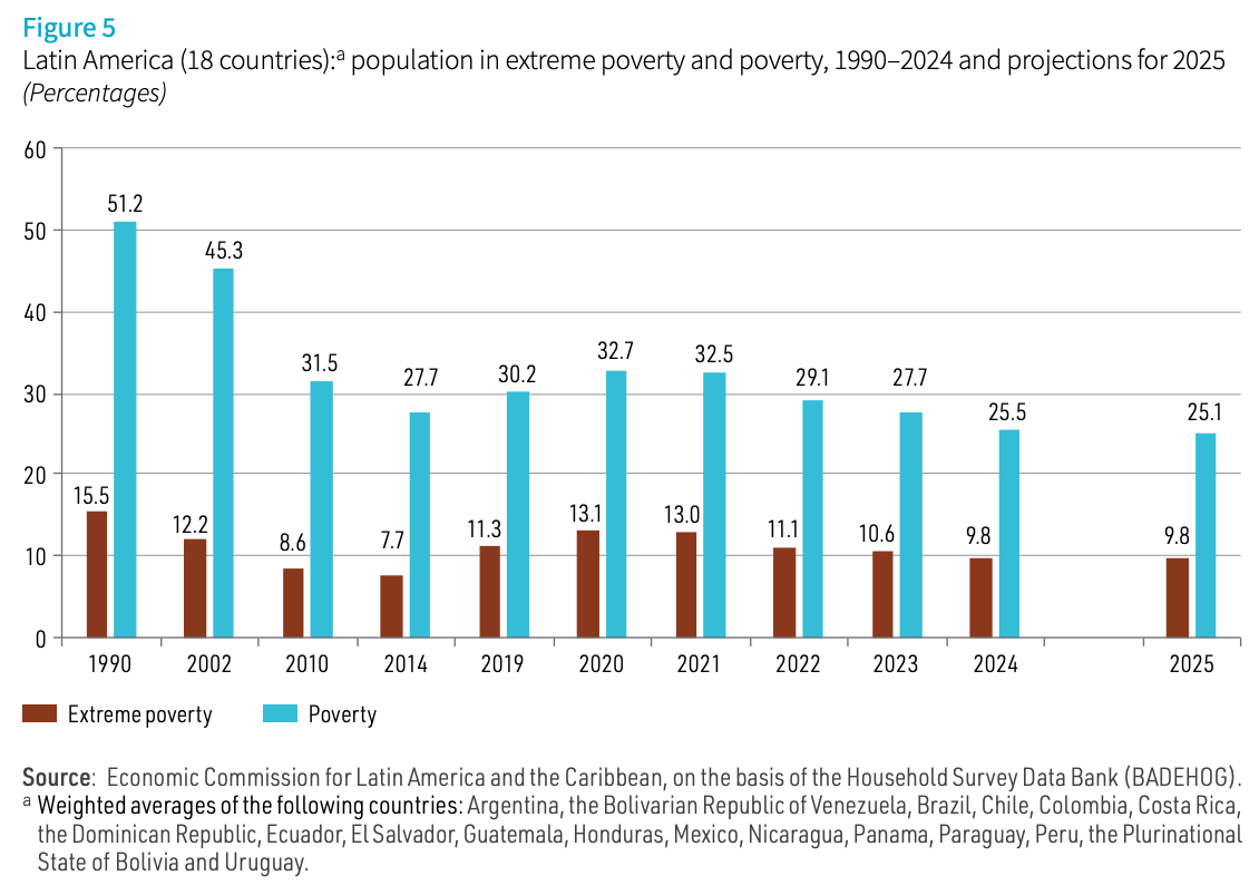 Plus, poverty in Latin America fell to 25.5% of the population in 2024, the lowest level on record. The 2.2% drop from 2023 means there are now 12 million fewer people living in poverty: a decline driven largely by rising wages in Mexico and Brazil. Colombia One