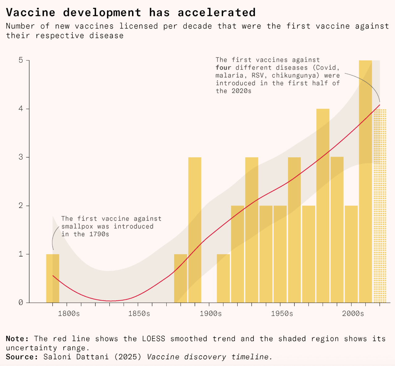 Global vaccine development has moved from serendipity to precision engineering. Saloni Dattani on how advances in microscopy, cell culture, genomics and mRNA platforms are now letting scientists design vaccines atom by atom, with a turnaround of just weeks. After more than a century of slow iteration, the pace has sharply accelerated, with multiple diseases getting their first ever vaccines in the past five years.