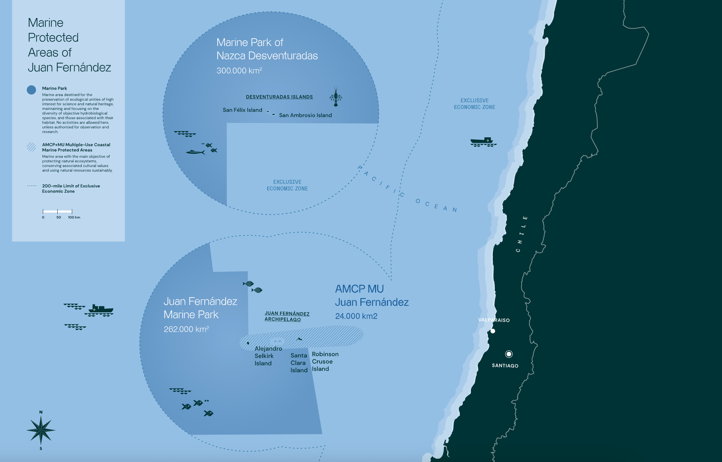 Chilean President Gabriel Boric has signed a decree adding 360,000 km² of full protection to waters around the Juan Fernández archipelago. The move brings the fully protected area around these parks to almost one million km², making it the third-largest fully protected marine area in the world (behind the Ross Sea and the Papahānaumokuākea Marine National Monument) and taking Chile past 50% protection of its exclusive economic zone. Oceanographic Magazine