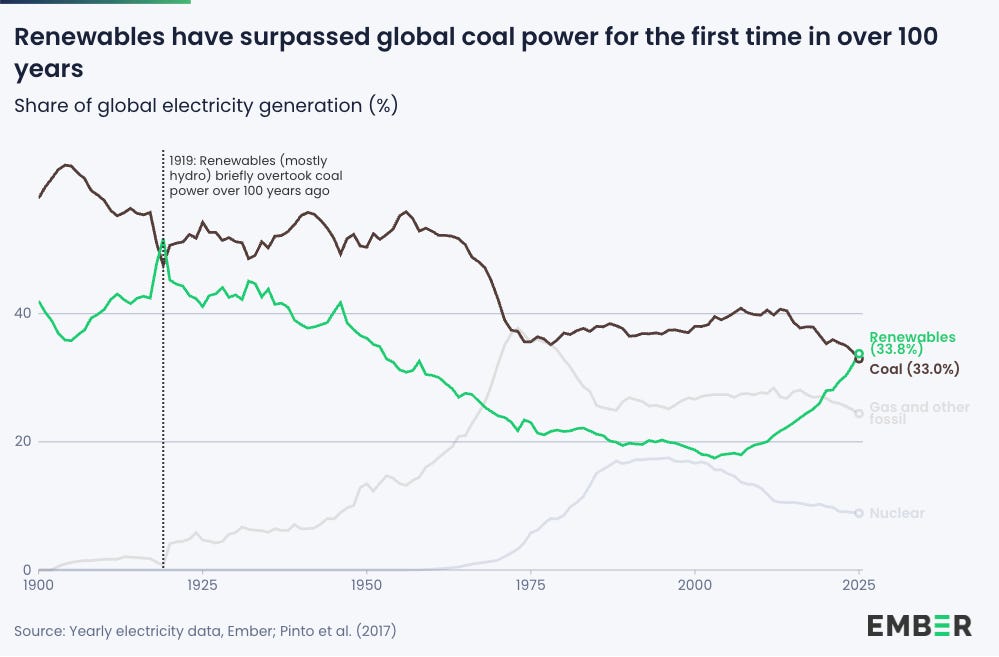 📈 Renewables overtook coal in 2025 for the first time in over 100 years.