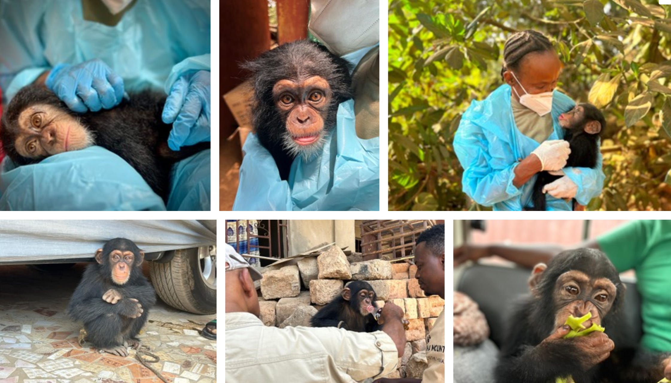 In the final week of February, the rescue team at Tacugama Chimpanzee Sanctuary in Sierra Leone saved the lives of two chimpanzees:Esther, a four-month-old baby rescued from street vendor, and Koba, who was found tied to a rope next to the house of a bushmeat seller. Both chimps are now being looked after by the team at Tacugama, but providing this care is no small feat. It costs USD$2,500 each year, per chimp, to cover essential expenses like medical care, vaccinations, medication, nutrition, and surrogate mother care.