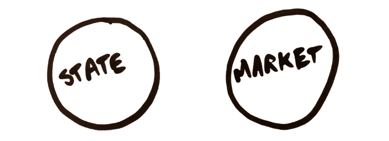 Almost every political fight, including the culture wars, can be traced back to this false binary. States versus markets. Equality versus efficiency. Redistribution versus growth. Those circles haven’t just remained separate — they’ve drifted further apart. The growing ideological rift explains why the last few years have felt so gridlocked, with our elected representatives seemingly incapable of addressing 21st century challenges like inequality, forced migration, privacy, climate change, ecological collapse… and of course, pandemics.